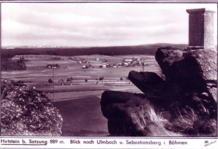 Blick vom Hirtstein nach Ulmbach und "Paßberg" links im Hintergrund, damals noch mit Kirche |