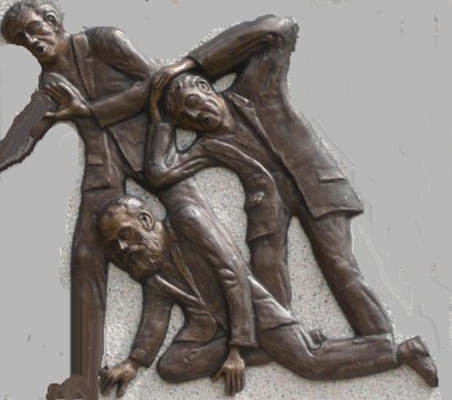 Auf unserem Denkmal sind also nur die Opfer zu sehen. Die Peiniger sind in das Unsichtbare zurückgetreten. Mit den Augen des Glaubens können wir sagen: Sie sind nicht zu sehen, weil sie vor die Schranken das göttlichen Gerichtes treten mußten. Unseren Blicken entzogen, mußten sie sich dem Blick des göttlichen Richters unterziehen. Darum haben wir kein Recht, über sie ein Urteil zu sprechen. Das Einzige aber, das wir aber sprechen dürfen und sprechen sollen, ist das Wort Jesu am Kreuz: "Vater, verzeih ihnen, denn sie wissen nicht, was sie tun." Dem ist nichts hinzuzufügen.